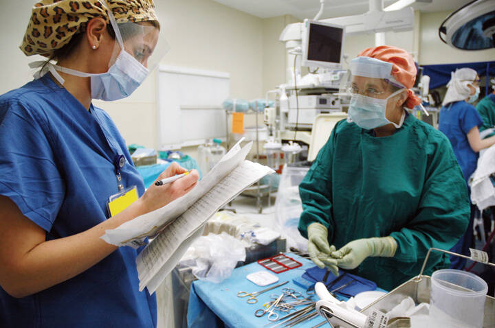 While George is undergoing the anaesthetic, the rest of the theatre team are preparing equipment and instruments for George's procedure. This includes a important aspect of safety carried out by the scrub practitioner 'the count', this process ensures that every instrument and consumable is accounted for before the start of the case, this 'count' will be performed at the mid-point and end-point of the procedure to ensure nothing is misplaced and potentially left inside the patient.